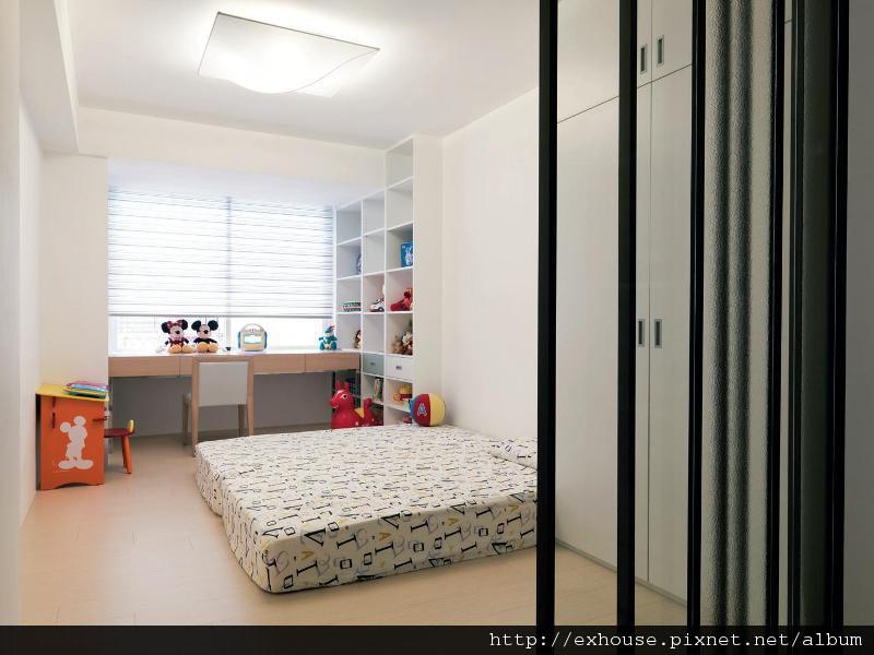 非常疼愛女兒的屋主夫妻,對家最大的期待就是給兩個寶貝最好的活動空間,因此將兒童房規劃在採光最好的位置,提供孩子一個開闊又有陽光的遊戲區,讓他們能開心地在這裡玩玩具、閱讀故事書。