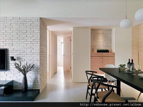 一樣以白為基調,但透過不同材質的組合,展現空間層次感。讓原本冗長陰暗的走道變得親切可人。