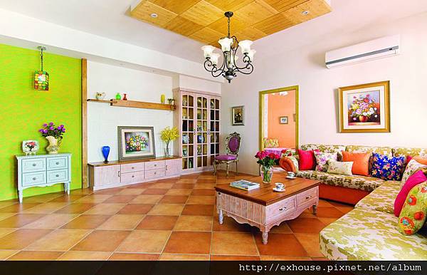 依照男、女主人各自的喜好,讓每個空間都有不同的主色調,色彩搭配的靈感,源自半寶石與皮件設計的概念,鮮明而活潑的用色,連孝親房都採用暖橘色,把異國情調引入居家設計中。
