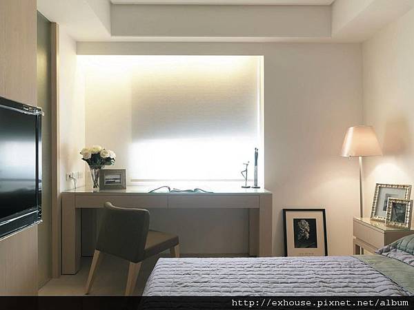 藉由訂製的書桌、床頭櫃提供符合空間尺度而又能提供實用需求的收納設計來達成。