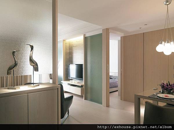 結合玄關隔屏、玻璃以及展示的概念三種元素融合在一起,達到可透光但又有實際收納需求的功能。