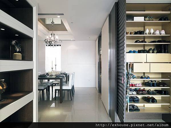 當鞋子數量很多,建議從一般的矮櫃改成高櫃,運用垂直空間增加收納量。而面對高矮、大小不同的鞋子種類,則可利用活動式的層板與小五金,適當地規劃收納。