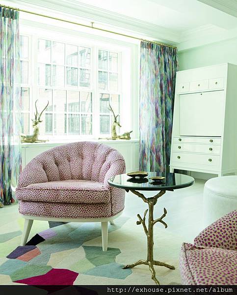 設計師Fawn Galli大膽採用圖紋壁紙作為背景,點綴奇趣動物造型的藝品及傢具圍繞其中,並仔細拿捏色彩之間的相互和諧及濃淡味道,傳遞屋主內心嚮往的奇幻世界,他希望這個脫離現實世界的夢幻居家,能讓屋主暫時從繁忙的紐約生活逃脫,沉浸在屬於他們的理想家園。