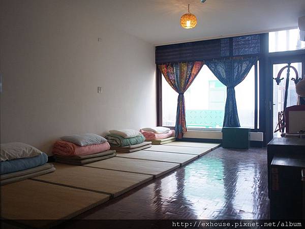 接手這棟屋齡四五十年的老透天厝,黃董並沒有對房子進行太多裝修,僅在原有的空間中,添加了從各地收藏而來的燈具與桌椅櫥櫃,年代上與這棟老屋空間十分融洽,彷彿原屋主本來就使用著這些復古的傢俱一般。空間規劃也替旅客們著想周到,一樓是對背包客而言最重要的交誼廳,無論是想討論分享經歷、或是靜靜地閱讀書寫都可在這裡找到一角。二樓以上則是住宿房間,有雙人與通鋪房間可供選擇。