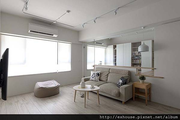 種風格發揮到最極致,不只減少過多裝飾性設計,將設計做到最極簡,甚至刻意不做天花封板,一方面保留原屋高度,有拉伸垂直高度的效果;另一方面藉由大幅減少木作,可有效降低木作費用。