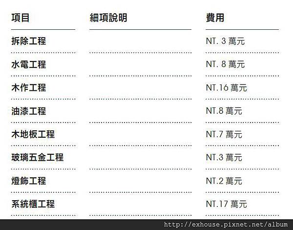 裝潢費用(不含廚具、電器、傢具、空調、設計與工程管理費)